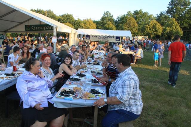 700 repas moules-frites ont été servis sans oublier les sandwichs. Le grand spectacle intitulé Noz années rétros était illustré par un grand panneau de 15 x 5 m. A minuit, le feu d'artifice a éclairé le plan d'eau.