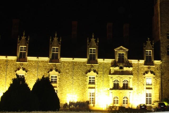 Un soir de la Saint Valentin, nous sommes entrés dans la très grande salle, appelée le logis du roi. Dans un autre siècle, la salle aurait accueilli des rois et des reines. Aujourd’hui, des boiseries claires aux traits dorés lui donnent presque un aspect moderne. Mais l’épaisseur des murs au nord de la salle, environ 2 mètres, nous rappelle l’âge vénérable du bâtiment.